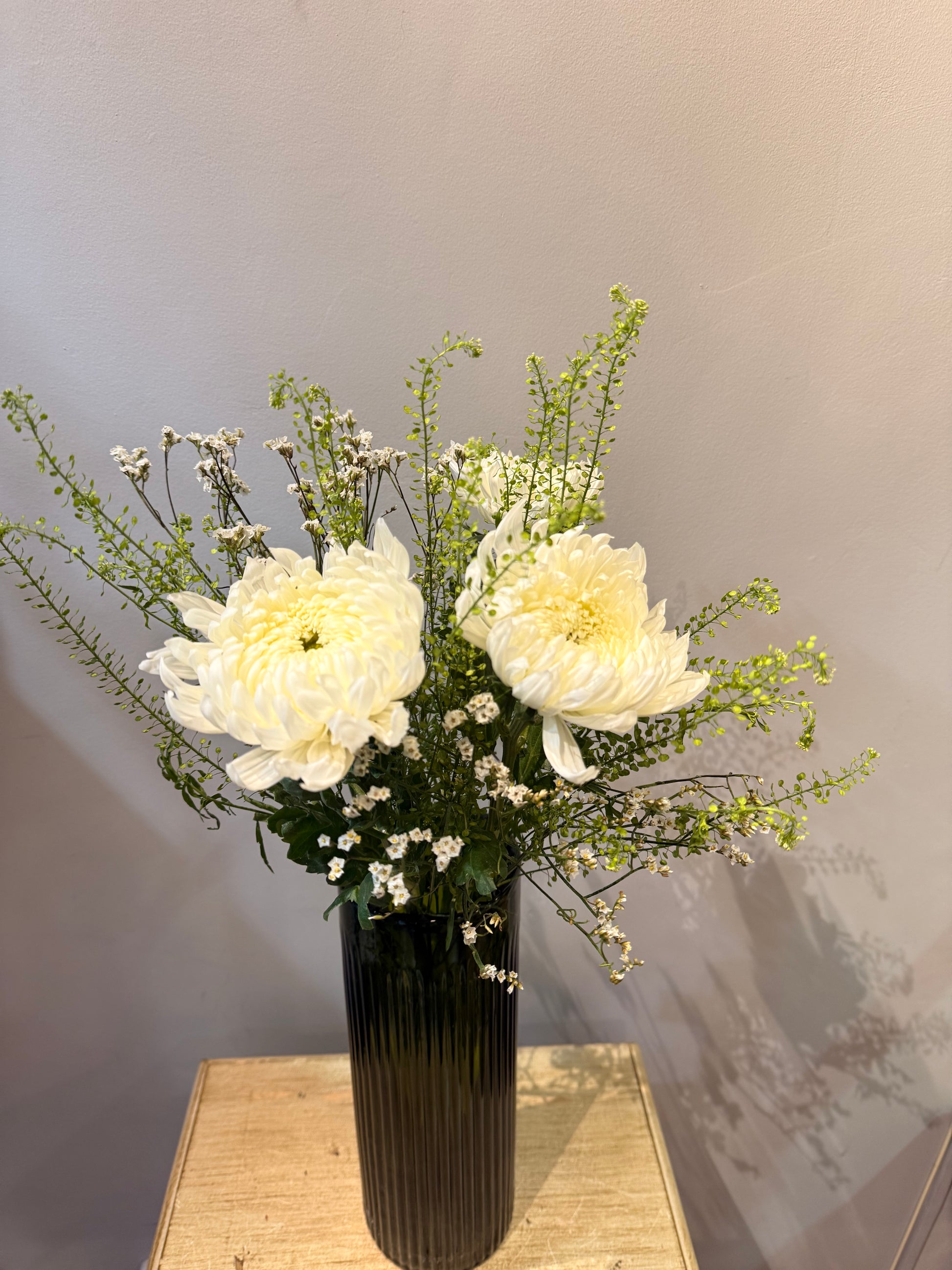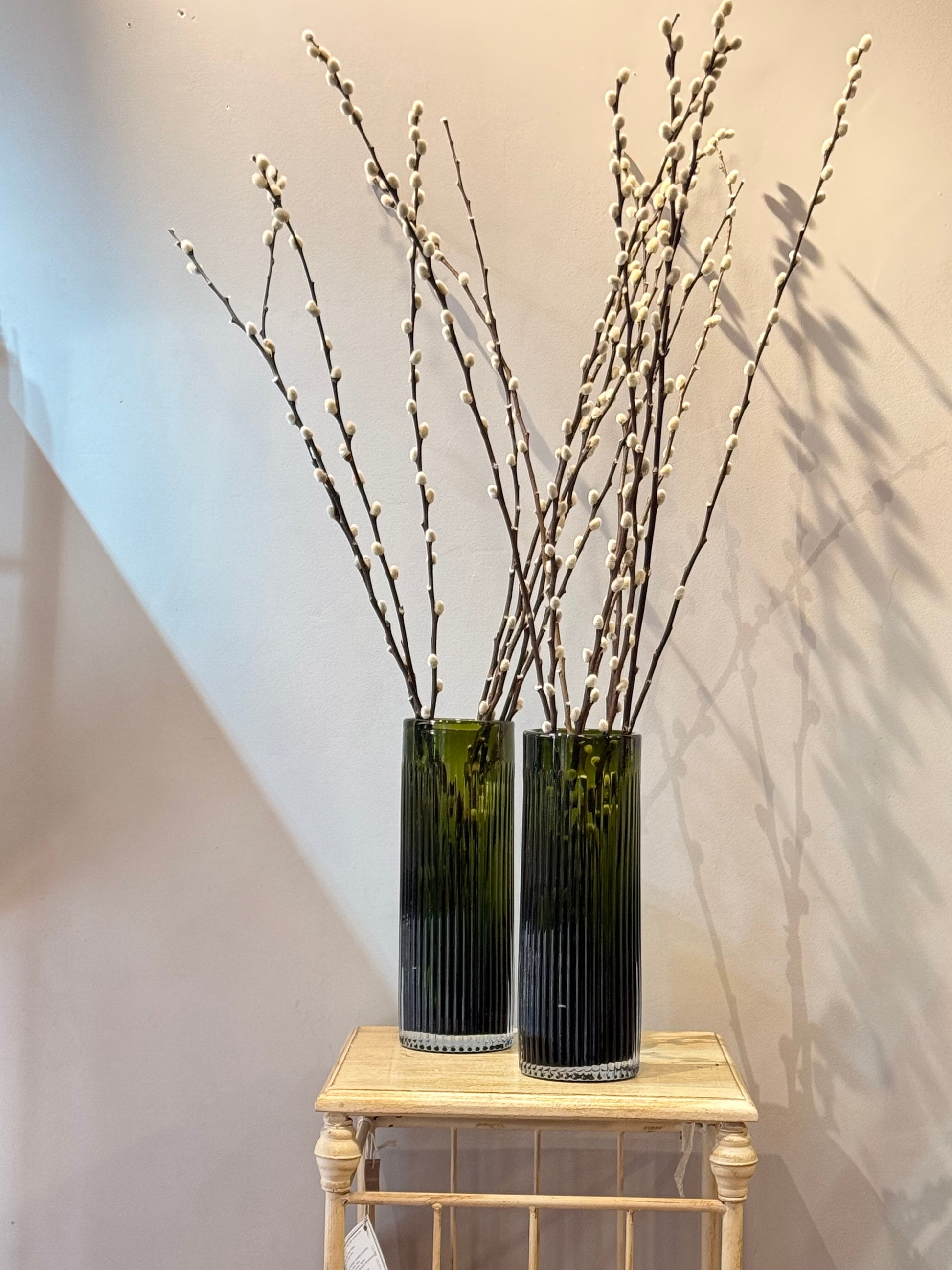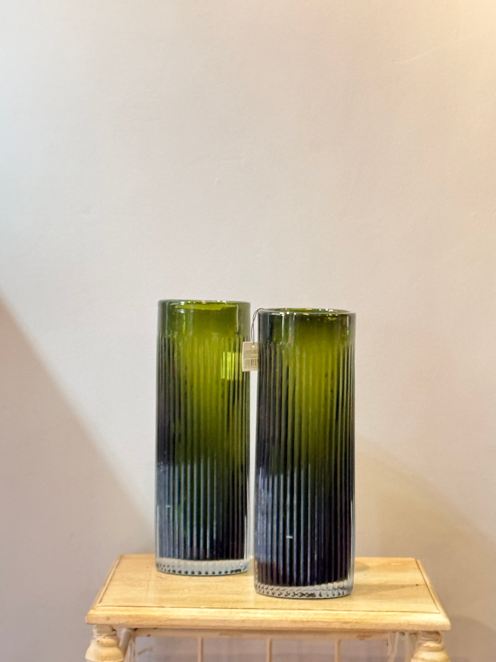 Jarrón elaborado en cristal con relieve. Color verde botella y acabado brillante.