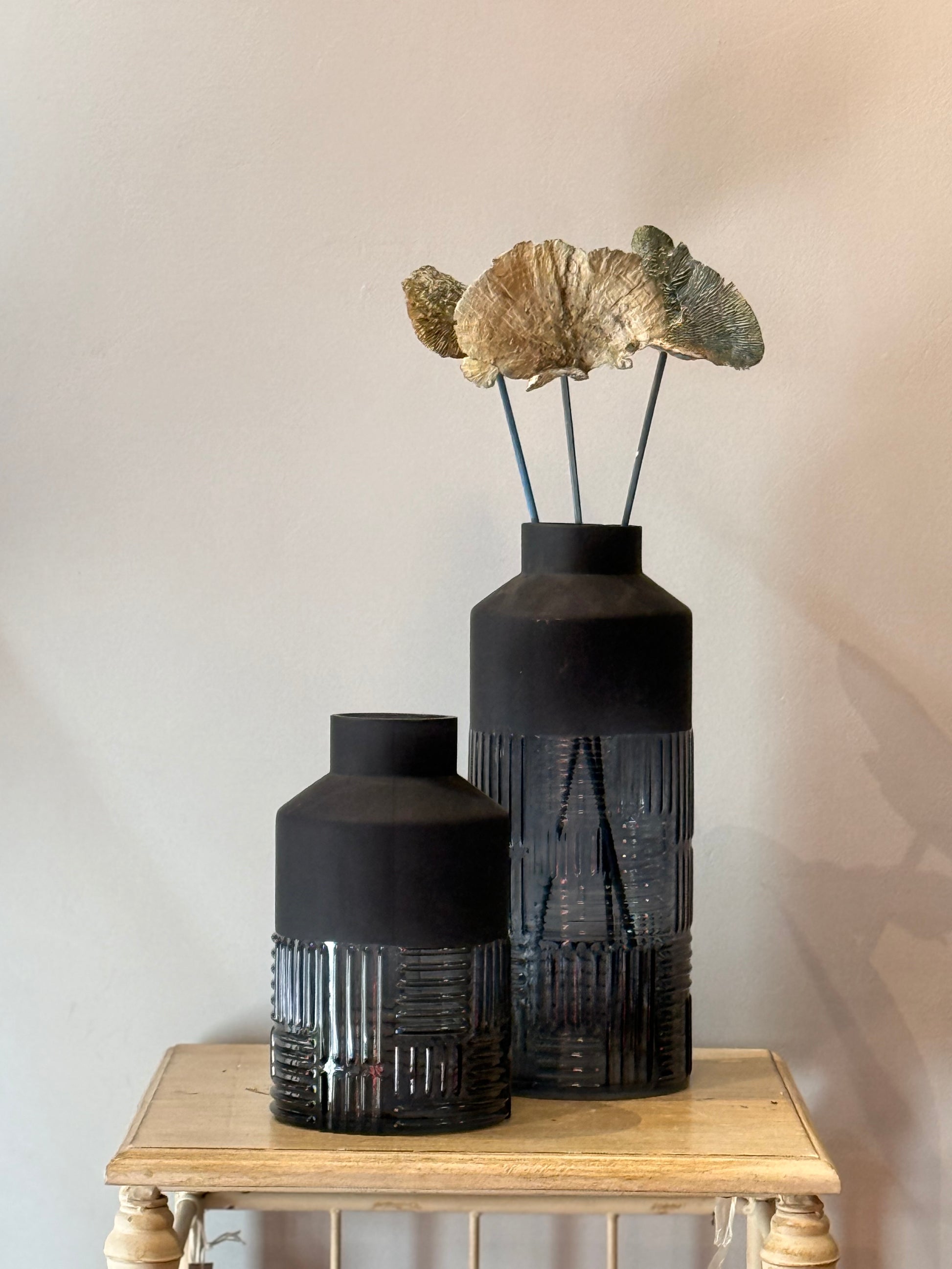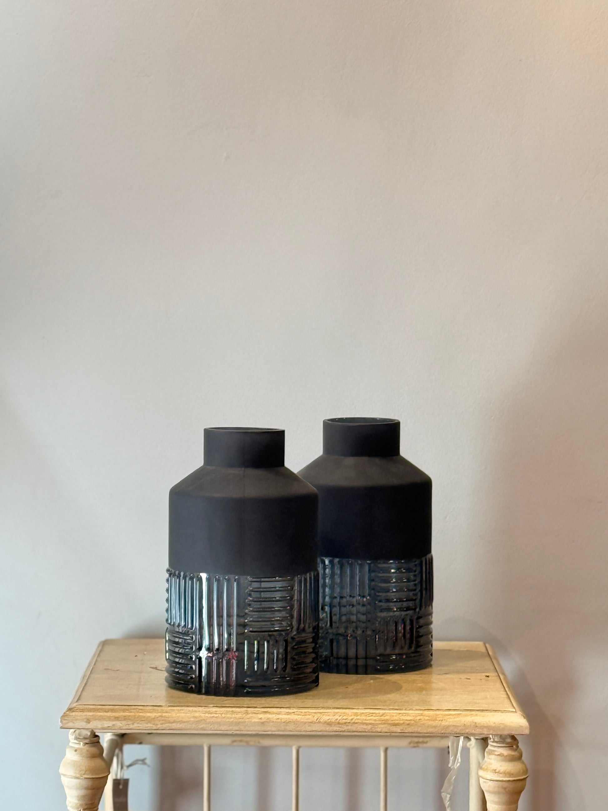 Jarrón Cristal Dos Texturas Azul