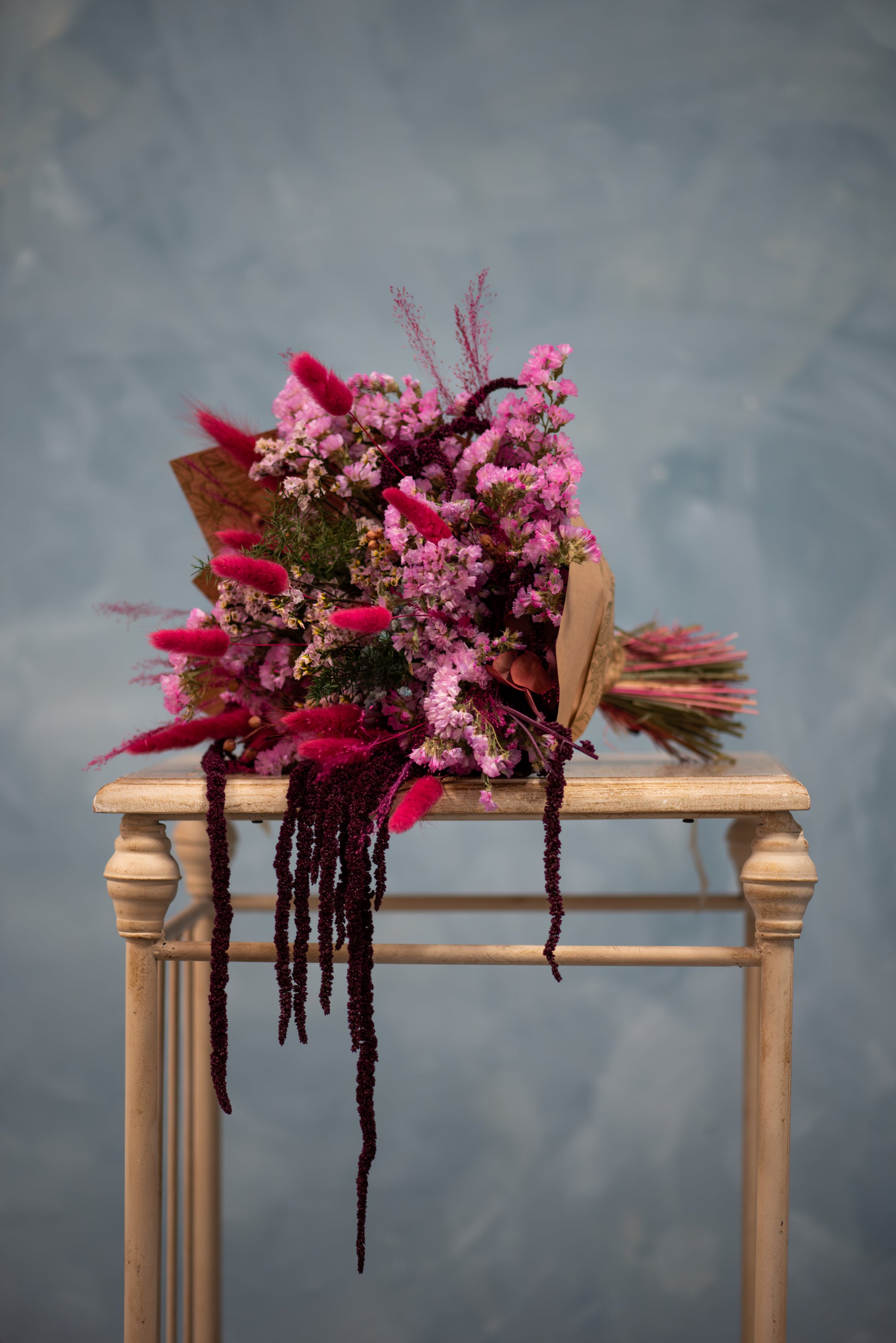 Todos nuestros ramos de flor seca se confeccionan en tienda y pueden personalizarse en la gama de colores según preferencia (tonos neutros, blancos, rosados, tierra, etc.).